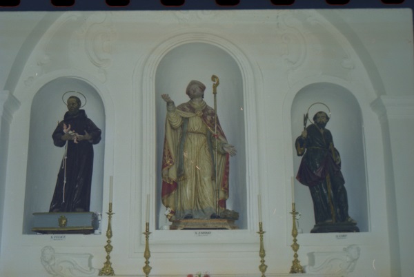 In periferia la Cappella della Madonna delle Grazie è nella via omonima. Conserva in una nicchia sull’altare maggiore (fig. 14) la statua lignea (fine Cinquecento) raffigurante la Madonna delle Grazie. Il controsoffitto ligneo del Settecento evidenzia i dipinti della Madonna delle Grazie, di santi e di sante.