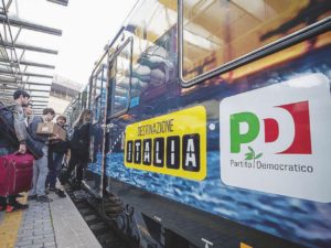 Un momento della partenza del treno del Pd “Destinazione Italia” alla stazione Tiburtina con il segretario del Pd Matteo Renzi, Roma, 17 ottobre 2017. ANSA/ANGELO CARCONI