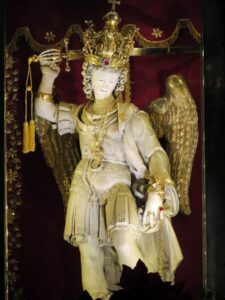 Portò alla vittoria la milizia celeste degli angeli di Dio contro Lucifero, l’iconografia lo descrive alato in armatura con la spada o lancia con cui sconfigge il demonio, spesso nelle sembianze di drago. Per questo era l’Arcangelo Michele era venerato dai guerrieri e dai soldati. Il suo è un culto popolarissimo ancora oggi e che nell’antica Europa fu anche motivo di pellegrinaggi tra terre allora lontane non solo geograficamente ma anche culturalmente e temporalmente, per la difficoltà e la pericolosità nel viaggiare. Un culto che nell’Italia del Sud, fu indirettamente una delle cause della nascita di uno dei regni più innovativi del Medioevo europeo: il Regno del Sole, il Regno Normanno degli Altavilla. Ma come si sviluppò nel Sud Italia il culto dell’Arcangelo Michele.