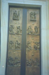 Sul portone d’ingresso (fig. 9) si notano altorilievi bronzei che rappresentano le stazioni della Via Crucis, realizzate nel XX secolo.