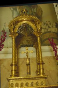 A sinistra dell’altare è collocata una colonna in pietra con basamento, proveniente dalla chiesa dell’Annunziata del Cinquecento; su in alto a destra e a sinistra dell’altare vi sono due tele del XX secolo raffiguranti: Madonna che regge il comune di Barile e (fig. 7) Simboli del sacerdozio, opera realizzata dalla pittrice Maria Distasi.