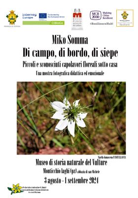 E’ aperta al publico, fino al 1 settembre, ’ nelle sale del Museo di storia naturale del Vulture, nell’abbazia di san Michele di Monticchio Laghi, la mostra fotografica “Di campo, di bordo, di siepe, piccoli capolavori floreali sotto casa” di Miko Somma. La rassegna, parte del più ampio progetto “Per fare tutto ci vuole un fiore”, a cura dell’autore, progetto multidisciplinare di educazione alla biodiversità ed alla comprensione e cura degli ambienti non protetti dalle normative ambientali stringenti, ovvero gli ambienti agricoli, periurbani, persino strettamente urbani, è iniziativa dalla Provincia di Potenza, della struttura CiBioGo della Unione Europea, del Network dei Comuni e delle Comunità resilienti e della MCR 2030 e, nella tappa a Monticchio, del bellissimo Museo di storia del Vulture. Monticchio ed il suo museo saranno per tutto il mese di agosto residenza di una mostra fotografica itinerante sul peculiare e ricchissimo patrimonio di fiori spontanei della nostra provincia, mostra realizzata per gli alunni delle scuole elementari e medie della provincia di Potenza che ha finora fatto tappa a Potenza, Savoia, Sant’Angelo le Fratte, Lavello e Vietri, per riprendere già da settembre negli altri comuni. La mostra è una selezione di 145 scatti su un totale di specie fotografate di oltre 450, una documentazione puntuale e senza finalità enciclopediche, di quei piccoli capolavori floreali spontanei che guardiamo nel nostro quotidiano senza mai osservare davvero e di cui spesso addirittura ignoriamo esistenza ed importanza nelle catene biologiche. Circa 90 foto esposte nelle sale del Museo, accanto ai preziosi reperti storico-naturalistici, ambiscono ad un dialogo proficuo con la ricchezza del Vulture, un contesto naturale e fisico particolare, viste le sue specifiche caratteristiche di vulcano, plesso lacustre e forestale, ma non avulso dal ricco patrimonio di bo-diversità dell’intera provincia di Potenza.