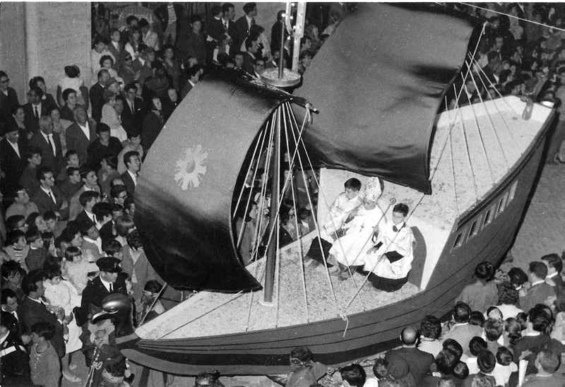 curi colori orientali, turbanti sul capo, catenelle, scimitarre, bisacce e di contro divise di militari romani, spade, lance, Cavalli…poi la barca come la cosa più importante. Sulla barca, seduto comodamente in poltrona il loro Re, col narghilè e servitù con ventagli a dargli frescura, un corteo lunghissimo, Interminabile, veramente originale, cui i figuranti, di veri attori protagonisti. Io la notte non dormii. Pensavo a quel bambino che guardava con occhi avidi il mio trenino! Decisi che non l’avrei fatto vedere a nessuno.