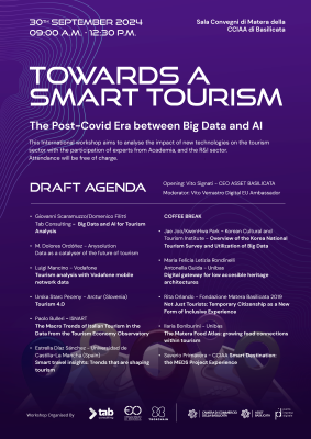 Turismo, tra big data e intelligenza artificiale: convegno internazionale a Matera lunedì 30 settembre. Italia, Slovenia e Spagna a confronto con l’Istituto di Ricerca su Turismo e Cultura della Corea del Sud.