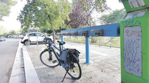 in copertina. una stazione di bike sharing vandalizzata a Matera