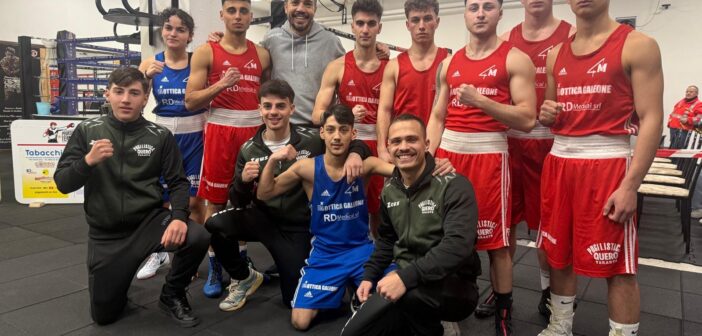 La città di Taranto può vantare che da cinquantacinque anni vede la boxe ininterrottamente protagonista sul territorio regionale e nazionale, grazie all’impegno della società di pugilato fondata dal maestro benemerito Vincenzo Quero, la Quero-Chiloiro, dalla quale nascono continuamente atleti, anche giovanissimi, che si approcciano ed emergono nel mondo della boxe. Così è stato anche per questa domenica di successi del 9 marzo, in cui i pugili della Quero hanno gareggiato all’interno della manifestazione pugilistica regionale organizzata a Matera dalla Pegasus gym & boxing club, con un risultato di 5 vittorie, 1 pari e 2 sconfitte, nonché tanta soddisfazione per i pugili che hanno debuttato sul ring materano sorprendendo per la loro preparazione e le belle prestazioni con cui hanno conquistato giudici e pubblico a bordo ring.
