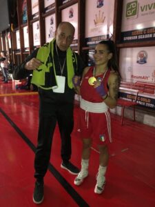 Un ottimo match combattuto da ambedue le atlete, con una Prisciandaro in forma, capace di danzare con eleganza e allo stesso tempo di colpire con determinazione e precisione, sin ad arrivare ad aggiudicarsi l’incontro. Il pugilato è anche arte, anzi è la Noble Art e far parte di un team significa collaborazione, condividere le vittorie delle colleghe  dei colleghi, viverci assieme durante preparazione e trasferte. Di questa nobiltà di animo è stata protagonista Giordana Sorrentino, detta Caterpillar la sua boxe determinata, va sempre avanti e non teme nessuno. Fa parte del gruppo sportivo dei Carabinieri, si allena ad Assisi ma si è costruita una palestra casalinga quando ritorna a casa a Fiumicino, dall’amata famiglia.
