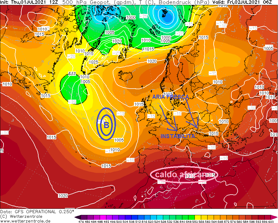 L’avvio del mese di luglio sarà dai due volti, una prima parte in cui soprattutto le regioni settentrionali dovranno fare i conti con una raffica di temporali, che risulteranno anche intensi nella giornata di domenica; successivamente, con il ritorno in grande stile dell’anticiclone africano che darà il via ad una nuova esplosione di caldo su quasi tutta l’Italia. Ma andiamo con ordine analizzando dapprima cosa ci aspetterà durante questo primo fine settimana di luglio. Una vasta depressione atlantica allungherà le sue spire verso l’Italia, richiamando aria fresca e instabile da nord ovest. La stessa, cercherà di scalfire la cupola anticiclonica presente sulla nostra penisola da più di dieci giorni, ma il suo intento andrà a buon fine solo sulle regioni settentrionali dove i temporali diverranno via via più diffusi, anche con rischio di eventi meteo estremi.