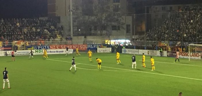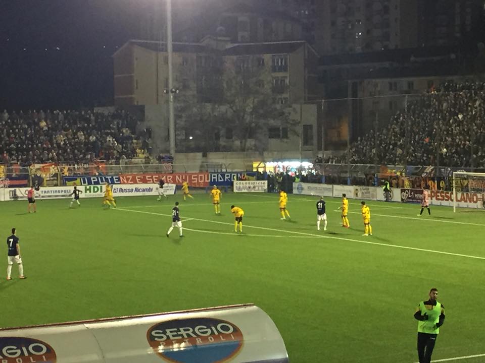 Forse aveva ragione Nicola Ragno a non voler giocare la partita con il San Severo in orario serale. Soprattutto dopo aver conosciuto il risultato della Cavese che nel pomeriggio ha battuto il Gravina con una doppietta di Girardi arrivata nei minuti finali. Questo ha inevitabilmente provocato, come era logico, una pressione psicologica non indifferente sui rossoblù. Che erano chiamati a non commettere errori e di conseguenza a battere il San Severo. Missione compiuta anche se nel secondo tempo si è sofferto troppo per difendere la rete del vantaggio contro un avversario che ha approfittato della circostanza che i lucani si sono troppo abbassati dietro consentendo alla formazione di Giacomarro di tenere sempre il pallino del gioco tra i piedi alla ricerca del pari. Al quale sono andati vicinissimi quando mancavano 10 minuti alla fine. Su un errore della difesa di casa, il centrocampista Kameni si è trovato il pallone sul piede destro e ha tirato quasi a colpo sicuro ma Breza si è superato respingendo il tiro e si è ripetuto anche sulla seconda conclusione di Palumbo, un altro ex della partita, mettendo in angolo. Un intervento decisamente salva vittoria quello del portiere canadese e tra l’altro fatto alla presenza dei genitori arrivati da Montereal. La posta in palio, dopo la vittoria della Cavese, era troppo importante per cui la preoccupazione maggiore è stata quella di non rischiare assolutamente niente ma di portare a casa, a qualsi costo, i tre punti. Spinti dagli oltre 5 mila spettatori presenti al Viviani che hanno inscenato, all’inizio della partita, una coreografia spettacolare che ha coinvolto tutti i settori dello stadio, la squadra di Ragno con le novità Sicignano, Vaccaro e Guadalupi dall’inizio, ha cominciato il match con il piglio giusto stringendo d’assedio i pugliesi nella propria metà campo e collezionando nello spazio dei primi 10 minuti una conclusione di Guadalupi respinta dall’ex portiere del Potenza Patania e 5 angoli che non hanno avuto esito felice per la buona difesa degli ospiti. I rossoblù hanno insistito e all’undicesimo hanno visto premiato il loro baldanzoso inizio con la rete del giovane Vaccaro, schierato al posto dello squalificato Panico. Il giovane ex Primavera del Bari si è fatto trovare pronto a deviare di testa da pochi passi un cross radente dalla destra di Guadalupi che ha tagliato tutta la difesa per arrivare sul secondo palo dove era appostato Vaccaro. Il Potenza ha cercato di mettere al sicuro il risultato con altre azioni di ripartenza che non sono state sfruttate a dovere per cui il risultato è rimasto in bilico anche se il San Severo non ha creato nessun pericolo all’attenta retroguardia del Potenza. La tensione e la pressione psicologica, unite al forte desiderio di portare a casa i tre punti, ha rafforzato la tendenza di Franca e compagni ad arretrare sempre di più il baricentro per non far arrivare pericoli dalle parti di Breza. E cosi è stato, con la sola eccezione della doppia occasione di Kameni e Palumbo sulle quali ci ha messo una pezza Breza. Tutto bene quello che finisce bene è il triplice fischio dell’arbitro è stato accolto come una linerazione dai giocatori in campo e dal pubblico. E’ passata un’altra giornata e il vantaggio sulla Cavese di 5 punti rimane abbastanza rassicurante con 5 turni ancora da giocare. Anche se gli sforzi del Potenza non sono ancora finiti. Domenica 8 aprile un’altra finale, l’ennesima, da giocare e vincere a Gravina. Nella stessa giornata in cui la Cavese giocherà allo Iacovone contro il Taranto.