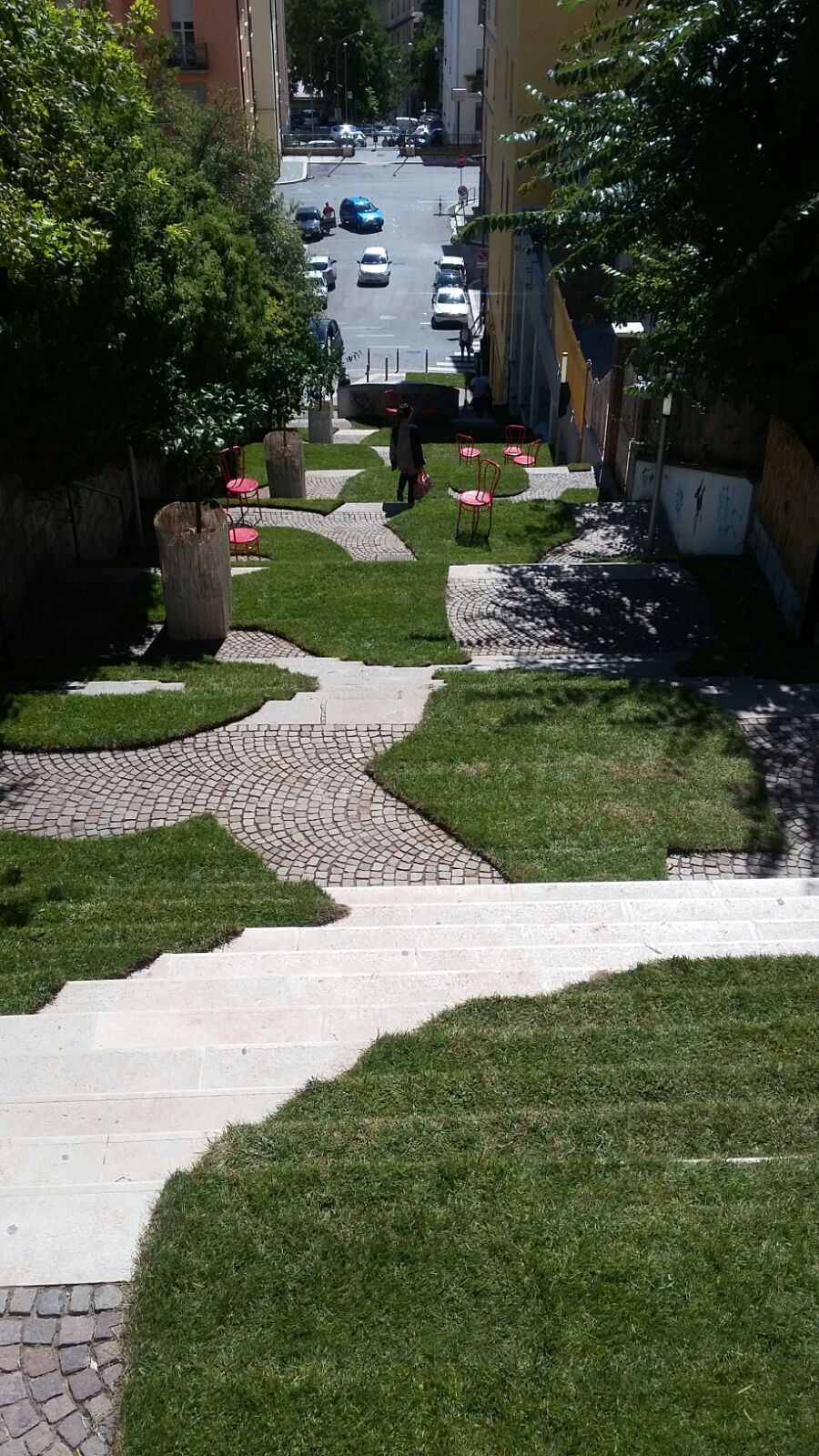 Ma voglio collegarmi, in particolare ,  ad uno degli avvenimenti ::l’inaugurazione ( avvenuta nella serata di sabato 17 u.s.,)  di quello che veniva indicato nel programma come “Il Giardino in Scala” ; l’arredo, cioè, con un tappeto di verde, della scalinata Rampa Leopardi ,conosciuta appunto come le “Cento Scale”. Ho seguito lo svolgersi dei lavori di allestimento, ho potuto constatare la passione e l’entusiasmo profuso dalla  troupe che ha eseguito i lavori e quella vitalità mi ha davvero impressionato  perché stavo toccando con mano qualcosa che pensavo scomparsa in questa città : la voglia di fare, di realizzare, di creare. L’impressione .che ne ho dedotto è quella che la direzione potrebbe finalmente essere quella giusta anche se la nave ancora segue una rotta zigzagante dovuta manifestamente alla mancanza di un  timoniere.