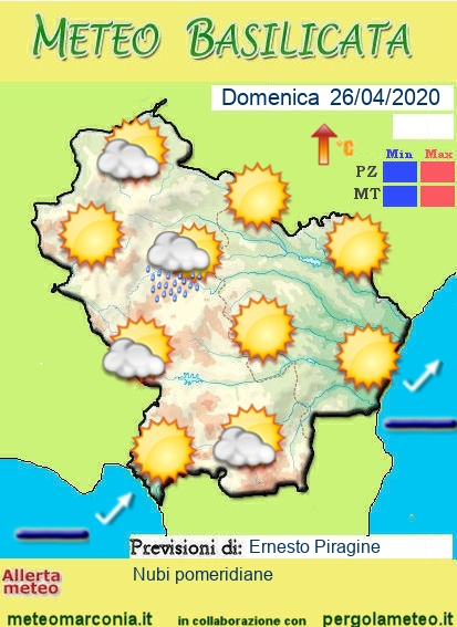 Per tutto il ponte del 25 aprile ed almeno fino a lunedì, la climatologia Lucana, si avvarrà della presenza di un anticiclone che ci farà trascorrere un paio di giorni con tempo bello e temperature in leggero ma continuo rialzo. Nel pomeriggio, soprattutto lungo la dorsale appenninica, ci potrà essere la formazione di qualche cumulonembo a sviluppo verticale,  senza però fenomeni di rilievo.