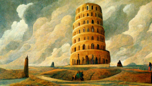 Torre di Babele realizzata da Vincenzo Cosenza con MidJourney (AI – Intelligenza Artificiale)