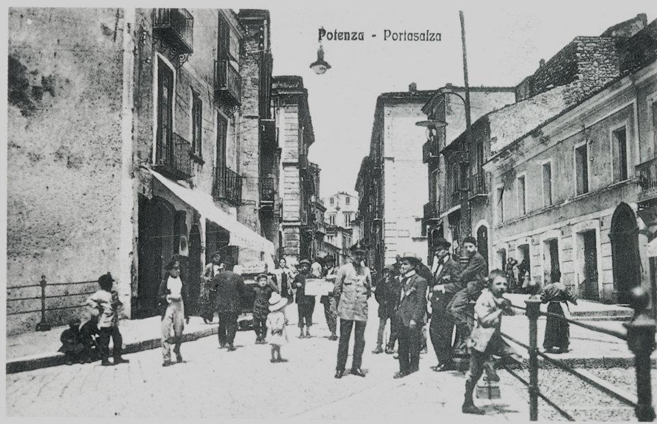 Ecco allora che il passaggio dal piccolo aggregato urbano fu più qualificativo che quantificativo. Le attività si dislocarono nella compagine urbana in modo diverso secondo fattori concomitanti ed anche spesso in conflitto tra loro. Non sempre le funzioni più pertinenti conquistarono la posizione di centralità, ma quelle più ricche e prevalenti. Perciò la distinzione tra centro e periferia, la rendita di posizione, le differenze tra vie e vicoli, piazze e rioni popolari, tra città e borgo. La campagna incalzava da Portasalza, presidio di fabbri-maniscalchi come i fratelli Cichidd, da via Angilla Vecchia, dall’arco di S. Gerardo, con il palazzo Scafarelli, affianco al Vescovado, da S. Rocco con i fabbri Piro, ed entrava nelle vie per l’acquisto di attrezzi e di cereali, di cartucciame e polveri, di petrolio e zolfo in via Roma, o da Michelangelo a S. Michele, incontro di boccaporti dei “Ferramenta” di Camillo Santoro e fratelli, di Florio e Guttieri e dei “Mulini” di Calvi e Benvignati. Indugiava sulle porte, con pollastre ed uova, con i prodotti ortofrutticoli, e poi nelle cantine di mezzogiorno. fervevano le piccole attività di Gallucci ed Avena per deposito di ghiaccio e fabbrica di gassose; e per l’abbigliamento le modiste si sono susseguite quasi sempre negli stessi locali: Pellicone, Rosa Pietrafesa e le signorine Brucoli, esponevano feltri e cappellini a colori, corredati di piume, penne e spilloni di corallo e madreperla. L’Industriacalze di Petilli Michele ci legò alle operose industrie del magico nord. e Pappacionn, don Ernesto Balzano, aranciata, spremuta e limonata nel 1923, primo distributore automatico di bevande appena arrivato dall’America. Una transizione lenta, metamorfosi graduale per una città che da agricolo-burocratica diventava burocratico-terziaria. Un centro storico ancora non proiettato nel futuro, un caos spaziale entro cui il bisogno di realizzare il vicolo e le porte non ha trovata la sua dimensione e per cui gli “spiriti” non potevano raccontare la loro storia.