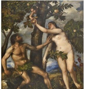 Adamo ed Eva nella rappresentazione di Tiziano, fissa nel gesto di Eva il destino dell’umanità. Ma, ci dice Luciana Gallo, è possibile un altro sguardo