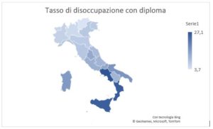 Fig.6 Tasso di disoccupazione per forza lavoro con diploma. Elaborazione dati ISTAT 2019 (ultimo anno disponibile).