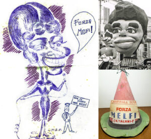 La ripresa nello studio del sacerdote Dante Casorelli, che alla richiesta di un fondale nero, mise a disposizione la sua tonaca. Lo slogan coniato per l’occasione: “Non c’è Gubbio vince Melfi”. Ed, in effetti, Melfi vinse alla grande. Ad assicurare la vittoria, tra l’altro, un grande truccatore, forse ingaggiato proprio da Cinecittà, che riuscì a trasformare un sarto del luogo, Vincenzo Solazzo, in uno stupendo Yul Brynner. Non così la puntata con Fiesole. Non tutto andò per il verso giusto anche se il bravo truccatore riuscì a fare del barbiere Pasquale Catalani uno straordinario Albert Einstein. Però per Melfi fu senz’altro una vittoria. Per due settimane ebbe la ribalta televisiva e l’evento fece davvero epoca. Enza Sampò al centro dell’attenzione. Dalla sua caricatura che campeggiava ovunque alla satira poi nel Carnevale, con un carro a lei dedicato. La partecipazione a “Campanile sera”, suscitò grande interesse e sulla stampa apparvero spaccati della città, per la prima volta in tutti i suoi risvolti. In particolare su un settimanale da noi ritrovato, “Le vostre novelle”, datato 6 maggio 1961, della città tutto e di più. La presentazione nei suoi minimi particolari, che noi riportiamo per rivivere quel tempo.
