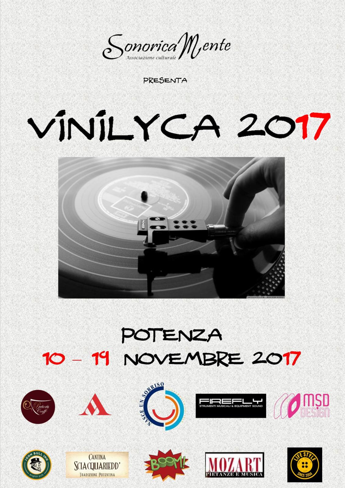 Evento della settimana da venerdì 10 a giovedì 16 novembre, stavolta sarò auto – referenziale (spero nella vostra clemenza) e, quindi, scelgo VINILYCA 2017, multi – evento organizzato da SonoricaMente insieme ad appassionati, artisti e locali potentini per omaggiare a modo nostro Sua Maestà il Vinile e la bellezza dell’ascolto (ovviamente condiviso) “vinilico” della grande musica.