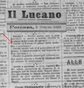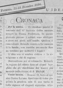 Dopo Maggiotti che parte per l’Aquila, arriva il rigido custode dell’ordine pubblico, Francesco Prandi: «In Italia si fanno pericolosi esperimenti di libertà. La Basilicata è rimasta immune da quelle agitazioni che spesso lasciano la desolazione ed il pianto». Sarà che le signore si spaventano degli urtoni e delle rincorse dei ragazzacci locali ai quali le guardie lasciano, nella festa di S. Gerardo, la più ampia facoltà di banda.