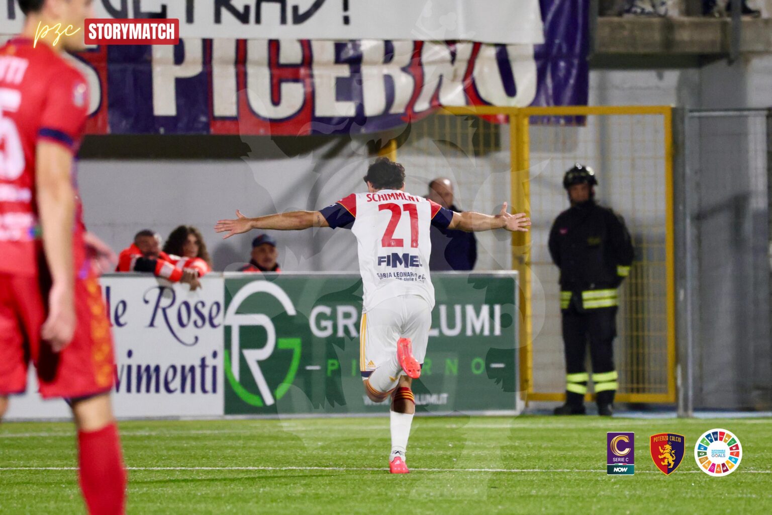 silenzio su tutti i campi in occasione delle partite dell’ultimo fine settimana. De Giorgio mette in campo la migliore formazione recuperando anche Caturano e facendo rientrare Novella e portando Riggio al centro della difesa a fare coppia con Milesi. Sull’altro fronte, oltre al rientro del difensore Gilli, Tomei apporta più di qualche cambio al suo undici con Pitarresi a centrocampo, Cardoni a destra e Volpicelli prima punta. Dopo un buon approccio dei padroni di casa che non produce grossi pericoli ad Alastra, è invece il Potenza a creare la prima, vera occasione della partita con lo scatenato Schimmenti che fa il vuoto sulla destra e poi mette in mezzo dove Rillo tira a colpo sicuro ma trova Merelli alla respinta. La risposta dei padroni di casa arriva un paio di minuti dopo con Pagliai che mette in area un bel cross che Novella, otti costruzione del gioco alla difesa del Picerno. E’ bravo Felippe a recuperare palla nella metà campo dei melandrini e consegnarla a Caturano che appoggia indietro per Castorani che da fuori area sfiora il palo. E’ un buon momento dei rossoblù di De Giorgio che alla mezzora si vedono negare un rigore sacrosanto come evidenziato dai replay per una trattenuta evidente ai danni di Caturano che era pronto ad effettuare il tiro con il sinistro da non più di otto/nove metri da Merelli. Il direttore di gara Mirabella fa continuare tra lo stupore dei tifosi rossoblù. Nel finale di tempo fiammata del Picerno che coglie due traverse: prima con Cardoni che trova la mano provvidenziale di Alastra a deviare la conclusione dell’esterno del Picerno e poi con un tiro improvviso di Volpicelli che coglie di nuovo la traversa. Il Potenza non sta a guardare e risponde con D’Auria che impegna Merelli e poi da fuori area sfiora il palo alla destra del portiere di casa. Inizio di ripresa favorevole al Potenza che per poco non trova il gol su una deviazione di un difensore del Picerno che per poco non beffa Merelli. Si ferma e fa molto bene Caturano che dopo dieci minuti chiede il cambio perché sente una leggera fitta al polpaccio. Al so posto entra il giovane Selleri, classe 2003, al suo esordio con la maglia del Potenza. Il giovane attaccante diventa protagonista dopo un minuto quando su un lancio in area del Picerno va a fare pressing su Gilli che si scontra con Santi e frana al suolo con il compagno lasciando il pallone a disposizione di Schimmenti che non ci pensa un attimo a saferare un tiro violento che colpisce il palo opposto e termina in rete per il vantaggio del Potenza. Subito dopo difesa del Picerno in affanno e ancora Schimmenti al tiro ma questa volta alto. Tomei corre ai ripari inserendo Vitali per Cardoni e Maiorino per Esposito. Il Potenza vuole chiudere la partita e ci va vicino con D’Auria che in area perde l’attimo propizio e si fa rimpallare il tiro da Gilli. Non si rassegna il Picerno e ci prova con un gran tiro da circa venti metri di Pitarresi che trova Alastra pronto a distendersi sulla destra e a respingere proprio sui piedi di Volpicelli che sbaglia il successivo appoggio per un compagno. Al minuto 65 De Giorgio decide di togliere Erradi e Felippe per inserire Ferro e Firenze e qualche minuto dopo tira fuori Schimmenti per far entrare Sciacca e passare alla difesa a cinque per difendere il prezioso vantaggio. Con questa mossa il Potenza si schiaccia nella propria area e lascia trequarti di campo libero al Picerno per organizzare la manovra senza incontrare difficoltà. Né Ferro e neppure Firenze assicurano il contributo che De Giorgio si