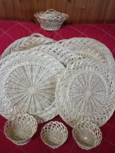 “Realizzo oggetti in vimini in ogni modo possibile.” spiega Rosa “Questi oggetti vengono realizzati con forme tonde o ovali. Non si possono creare forme quadrate perché, anche se il vimini viene tenuto in acqua due ore prima dell’inizio del lavoro e viene costantemente bagnato per ammorbidirlo,  se piegato a 90 gradi si spezza lo stesso. Negli anni ho creato lampadari, quadri, vasi, tavolini e molto altro, se vedo una cosa che posso realizzare in vimini provo sempre a farla.”