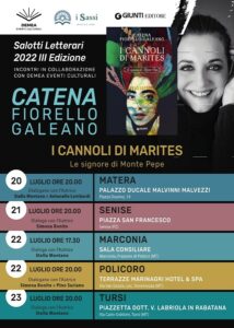 Per la terza Edizione di Salotti Letterari comincia mercoledì 20 luglio il tour della scrittrice siciliana Catena Fiorello Galeano, autrice del romanzo “I cannoli di Marites”, edito da Giunti. Cinque le tappe del tour – organizzato dall’Associazione I Sassi in collaborazione con Dema Eventi Culturali e Giunti Editore – secondo il calendario: 20 luglio a Matera (Palazzo Ducale Malvinni Malvezzi) ore 20, dialogano con l’autrice Stella Montano e Antonello Lombardi; 21 luglio a Senise (piazza San Francesco) ore 20, dialoga con l’autrice Simona Bonito; 22 luglio a Marconia (Sala Consiliare) ore 17,30, dialoga con l’autrice Stella Montano; 22 luglio a Policoro (terrazze Marinagri hotel) ore 20, dialogano con l’autrice Simona Bonito e Pino Suriano; 23 luglio a Tursi (piazzetta V. Labriola, Rabatana) ore 20, dialoga con l’autrice Stella Montano.  Catena Fiorello Galeano – che ritorna sempre volentieri in Basilicata – ha ambientato la storia del suo ultimo libro a Monte Pepe, un piccolo paese della Sicilia che sta per diventare il “Borgo della Poesia e dell’Incanto” grazie all’instancabile iniziativa di Nunziatina, una donna che ha una passione innata per la letteratura e per la poesia. Oltre a lei, però, nel borgo vivono altre quattro donne che hanno una rosticceria, “Il Regno degli Arancini”. La sicilianità traspira in ogni riga del romanzo, a testimonianza del legame tra l’autrice e la sua terra. E proprio la sua terra non è sfondo, ma protagonista, ambientazione ideale per una storia di questo tipo, fatta di piccoli dettagli e grandi stravolgimenti. Le cinque donne titolari della rosticceria vivono un’ondata di visibilità grazie alla partecipazione a un programma televisivo condotto da Octavia Cooper, che le rende famose in Italia e non solo. Nunziatina, Sarina, Rosa, Maria e Giuseppa si trovano quindi al centro dell’organizzazione del festival letterario e delle grandi richieste dei clienti che hanno reso “Il regno degli arancini” quasi un “luogo di culto”. Il tanto lavoro le costringe, dunque, a cercare un supporto e lo trovano in Marites, una cuoca filippina che si rivela essere davvero imbattibile nella preparazione dei cannoli. Tutto ciò porterà a diversi colpi di scena, per un romanzo sempre capace di tenere alta l’attenzione del lettore. Per Rosa Gentile (I Sassi)  un’ulteriore tappa di avvicinamento alla quarta edizione del Premio Letterario Nazionale I Sassi.