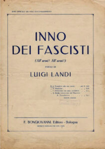 Si fa già esercizio di religiosa solennità e mitizzazione del Fascismo per avere spodestato i signorotti della politica, mentre in giro si assiste all’ossequio del magnifico e purissimo movimento fascista. L’oratore mette in guardia con parole roventi il Fascismo contro tutti i subdoli tentativi e racconta di quanto sia costato di dolori e di sangue il movimento … chiude con un alalà e con la calda invocazione che “la nuova giovinezza d’Italia canti la sua fremente canzone”.