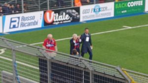 Franco Carrera sotto gli spalti dei tifosi