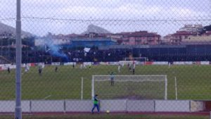 La partita tra Cavese e Potenza sì é giocata al Simonetta Lamberti davanti a una buona rappresentanza dI tifosi potentini, intorno a quattrocento persone, e circa duemila campani, sotto un cielo nuvoloso e a tratti leggermente piovoso al punto da rendere scivoloso il terreno di gioco nei secondi 45 minuti.