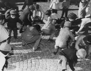 Arrivano i trenini di legno rosso e verde, le sorprese coi fiocchi, le pianole, con i Pinocchio e i Pierrot. Traboccano di cioccolatine rossoturchine, di confezioni e di nastri le grandi vetrine. Sostavano le lingue e gli occhi in mucchio, pensando alle calze piene di cose, ai tamburi rullanti delle fucilazioni, alle trombe di ottone per le suonate nel vico Addone.