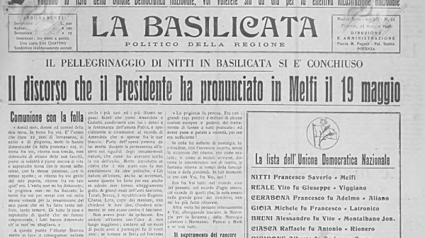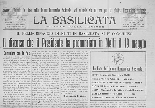 A maggio riprende le pubblicazioni anche Il Lavoratore, battagliero giornale socialista nato a Melfi nel 1905 e che ora, stampato nel capoluogo, diventa l’organo della Federazione Socialista Provinciale di Potenza.