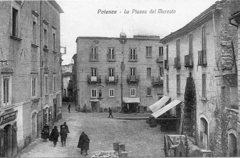 Più tardi, intomo al 1845, il mercato di Potenza si spostò verso il Largo dell’Intendenza, chiamato così perché vi era il palazzo dell’Intendente borbonico, ed ogni domenica si riempiva di gente che comprava e che vendeva, paesani e forestieri. Ed inondavano la piazza i cereali, i polli, le uova, la sugna e vari oggetti d’arte e d’industria per usi domestici, per comodi di vita e per la coltura delle terre.