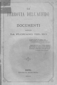 Nelle foto: L’Abbazia e quel che resta della grande foresta – I tre protagonisti della ferrovia: Del Zio, Fortunato e Mancini – Rara pubblicazione di Del Zio con gli atti per la realizzazione della ferrovia dell’Aufido.