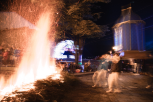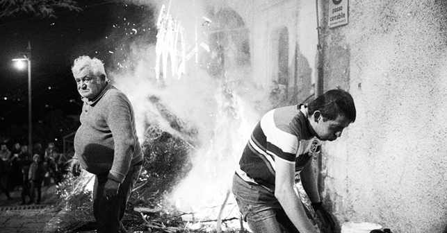 Diverse sono le spiegazioni: le più plausibili sono quelle che vedono la Uglia come un rito per proteggersi dal male, quando l’immagina sacra supera le fiamme, o che l’attraversamento del fuoco sia una sorta di rito di purificazione. Per alcuni si tratterebbe di una canonica rappresentazione popolare della lotta tra il bene e il male o per altri un rito di passaggio dall’età adolescenziale a quella adulta. È comunque una tradizione che si tramanda da padre a figlio ed è significativo a tal proposito il titolo che Mimmo ha dato alla mostra. Infatti, nel “E’ tutta colpa Tua” ha voluto ricordare il padre recentemente scomparso e soprattutto quanto l’attaccamento del padre Tanino alla tradizione abbia influito su di lui nello scoprire e sentire dentro le antiche tradizioni. È il tutto non a caso dal momento che il rispetto della tradizione equivale a sentire ed amare il proprio paese, e Mimmo, la sua Pignola continua a sentirla ed amarla anche dalla lontana Valencia.