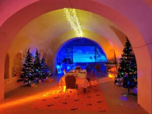 Nei secoli successivi sono stati effettuati molti interventi, anche radicali. La concezione difensivistica dell’epoca viene qui interpretata e tradotta con efficienza ed efficacia: controllo visivo inappuntabile delle vie d’accesso per un tempestivo avvistamento del pericolo, costituito soprattutto dalle bande piratesche; massimo sfruttamento degli sbarramenti naturali; presenza di torri circolari nella cinta muraria a protezione ordinaria del nucleo abitato. All’interno della cinta muraria erano presenti altre forme di difesa, che rendevano la roccaforte praticamente inespugnabile. Fu centro fortificato sotto i Normanni (1150), che probabilmente costruirono la fortezza su un precedente castello longobardo o eremo di monaci basiliani. “Magia di Natale al Castello di Laurenzana”, questo il titolo dello spettacolo di luminarie che la Pro Loco “Universitas Laurentianae”, l’Amministrazione Comunale, la BCC Basilicata e la Regione Basilicata hanno organizzato a partire dal 22 dicembre presso il castello feudale del borgo egidiano. Dopo l’inaugurazione del 22 dicembre scorso, il castello rimarrà aperto fino al 6 gennaio 2023 con tre spettacoli al giorno previsti alle 17:30, alle 18:30 e alle 19:30.