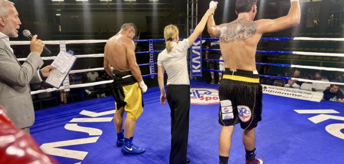 Aggiunge un’altra vittoria in carriera il professionista tarantino Francesco Magrì, che lo scorso venerdì 20 giugno ha battuto sul ring di Santa Marinella, in provincia di Roma, il pugile nativo argentino, residente a Roma, Angel Mariano Castillo. Sei riprese di boxe versatile per il coriaceo pugile della Quero-Chiloiro che, all’età di ventisette anni e dopo i grandi traguardi raggiunti nel dilettantismo, punta a un titolo nei professionisti e, con questa quinta vittoria su cinque match disputati, aggiunge un altro tassello importante per i suoi obiettivi. D’altronde non si può certo dire che affrontare Castillo, detto il “Pitbull”, sia stata una passeggiata per Magrì, alle prese con un avversario mai domo che si è confermato un pugile solido e continuo negli attacchi; ma la strategia del pugile romano non ha sorpreso Magrì, che oltre a fare il suo pugilato tecnico, ha accettato la battaglia lavorando sulla corta distanza, entrando così nel campo del brevilineo Castillo con colpi che hanno fatto barcollare l’avversario almeno un paio di volte. Una boxe completa quella di Magrì che, – nella vetrina della manifestazione di Santa Marinella organizzata dalla società procuratrice Promo Boxe Italia di Mario Loreni e incentrata sul titolo europeo silver vinto dal mediomassimo Luca D’Ortenzi su Carlos Lamela, – ha fatto la sua bella figura. E con la sua quinta prova positiva, il superwelter della Quero-Chiloiro si prepara già per altri due possibili appuntamenti sul ring che lo vedranno protagonista per questa estate, tra cui sicuramente quello con il prestigioso Trofeo Città di Taranto, la manifestazione che il suo coach e manager Cataldo Quero sta allestendo per il 13 agosto, l’importante data in cui cinquanta anni fa il maestro benemerito Vincenzo Quero vinse il titolo italiano nel gremito stadio Salinella (attuale Iacovone) a Taranto.