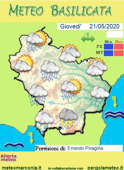 Mercoledì : repentina estensione dell’instabilità a tutta la Regione, che determinerà diffusi fenomeni temporaleschi. Prestare massima attenzione perché gli stessi potrebbero risultare di forte intensità e scaricare notevoli quantitativi di pioggia in poche ore. Colpi di vento nelle zone temporalesche e temperatura in diminuzione.