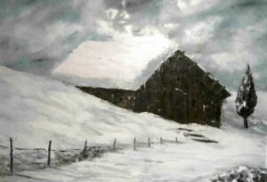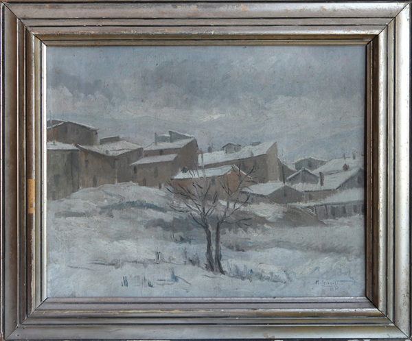 La città chiude, restringe. Il pittore sconfigge la monotonia degli interni e si raffigura una “affacciata di finestra” sulla campagna. È il paesaggio! Quel suggestivo scorcio della salubrità appenninica, dalle lande di neve. Quando gennaio soffia da Montocchio e borea agita la svolazzante coltre nel turbinio della tormenta che non si placa al rauco susseguirsi del gallo, allo sbattere delle porte, ai cascinali infreddoliti, al fumo di radi comignoli, alle grondaie del gelo. E dalle concimaie viene il tepore fumigante delle stalle.La campagna è immensa, profonda e misteriosa, ci raccoglie nel suo grembo con le case disseminate sulle fiumare e sui lembi di cielo.
