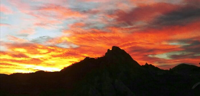 Inizia con un indimenticabile ricordo d’infanzia quest’ avventura, con me bambina, che durante le vacanze estive non mi stancavo di guardare stupita dalla finestra della casa della zia Marietta il “Grande Pescecane in emersione” presente ad ogni mio risveglio. Così avevo ribattezzato l’immensa roccia che fa da spina dorsale al Borgo di Pietrapertosa, come si vede dal paese “affrontato” di Castelmezzano. Tanto grande fu quell’imprinting che la sua immagine entrò prepotentemente nei quadri dedicati a questi luoghi amati, con il titolo “La Montagna Stregata”… Già questo evidenzia la stretta corrispondenza con Pietrapertosa e con le sue rocce pareidolitiche, che ne sono la stupefacente caratteristica, insieme a quelle di Castelmezzano il paese gemello di cui sono originaria…