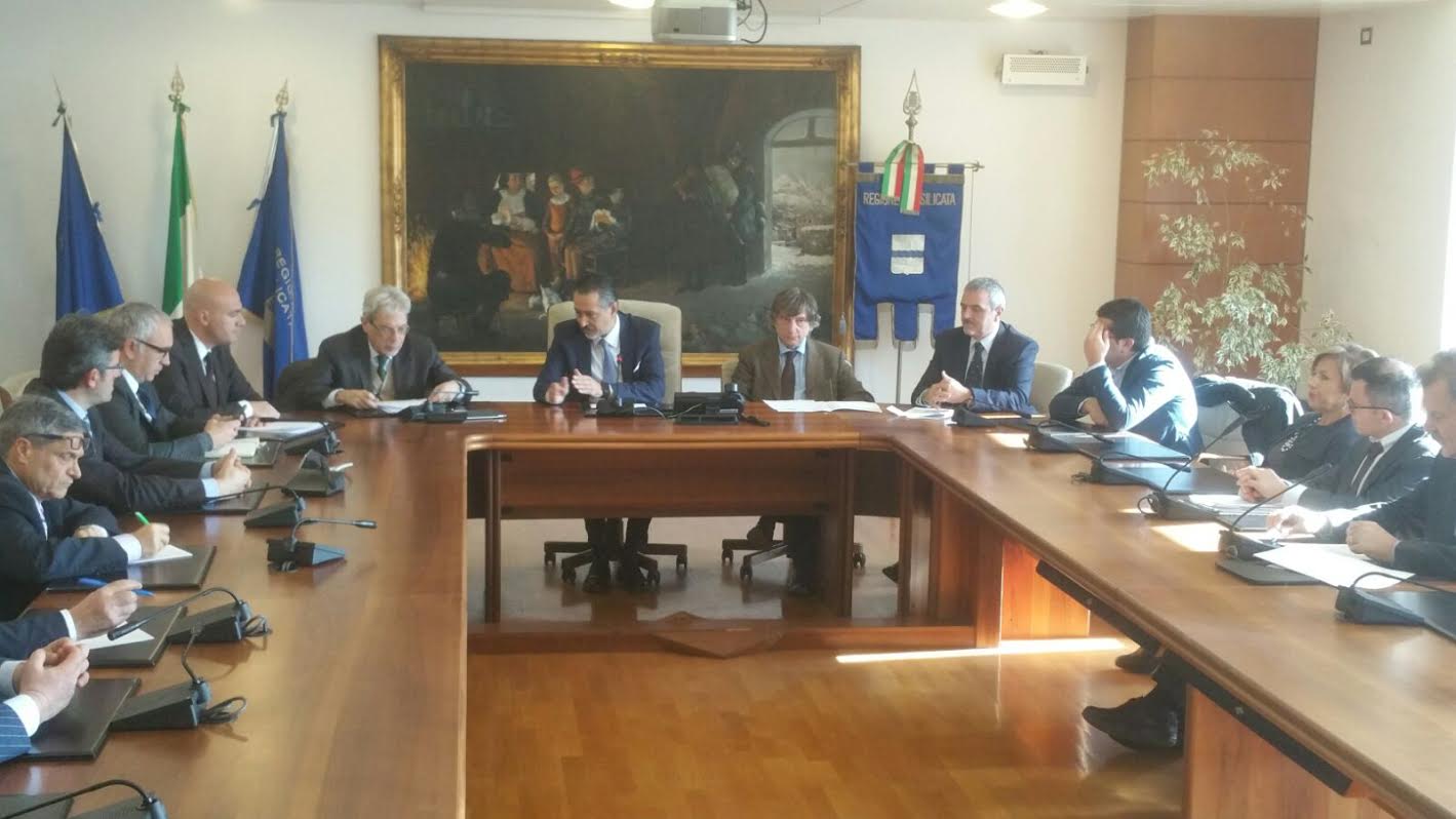 Tempi di attuazione del “Patto per Basilicata” ed emendamenti alla legge di bilancio sono i principali temi affrontati questa mattina, nel corso di un incontro operativo, che si è svolto nella sala Verrastro della Giunta regionale, tra il sottosegretario alla Presidenza del Consiglio dei Ministri Claudio De Vincenti, il presidente della Regione Basilicata Marcello Pittella, gli assessori Luca Braia e Francesco Pietrantuono, i direttori generali e le autorità di gestione dei Fondi europei.
