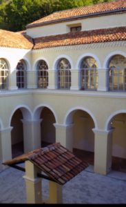 Il Municipio, dopo il terremoto del 1998, è ubicato (fig. 1) nel complesso conventuale di Santa Maria delle Grazie (popolarmente detto di Sant’Antonio). Il convento (1573) poco conserva della struttura originaria. Solo il chiostro e il refettorio (ora sala consiliare) conservano l’aspetto primitivo.