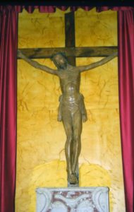 L’altare maggiore, in marmo pregiato, è abbellito da quattro angeli. Da ammirare (fig. 7) il Crocifisso ligneo del XV secolo.