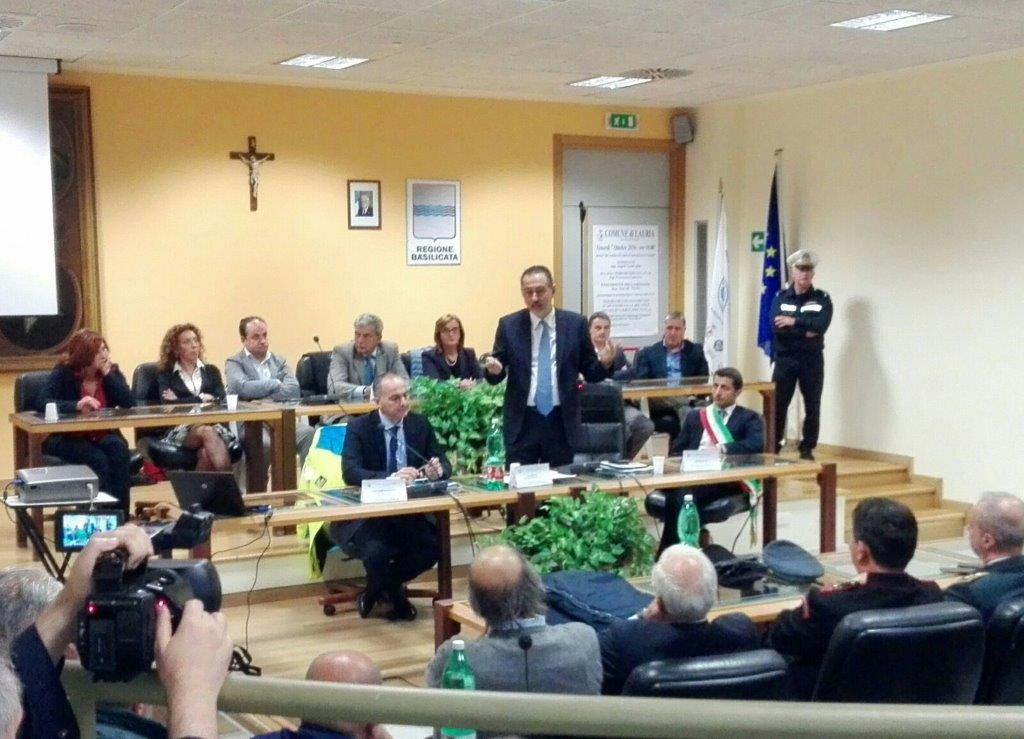 Non era la curiosità di guardare da vicino quei 3 kilometri di strada che per essere aperti al traffico hanno avuto bisogno perfino di finanziamenti in conto manutenzione straordinaria, cioè dei soldi spesi per aggiustare una cosa che mai era entrata in funzione.Era che l’ufficialità data all’evento da parte della regione indicava chiaramente che si sarebbe partito da questo paradosso per lanciare un messaggio di come le cose debbono cambiare nel Paese e nella regione se si vuole appena appena cercare di recuperare la enorme distanza che separa la politica dai cittadini. E cioè che cose del genere non debbono più accadere e che le cose che si aprono si debbono anche chiudere, le cose per cui si stanziano i soldi debbono essere fatte e che i cantieri aperti non si finiscono con l’appalto fine a se stesso. E quindi più che di quella strada si è parlato di che cosa è stato messo in cantiere sul piano infrastrutturale, o meglio su quelle delle tre linee di infrastrutturazione, l’immateriale (la banda larga dovunque),la stradale e quella ferroviaria. Partiamo dalle strade , per le quali sono in gioco 1,2 mld di Euro, messi nel patto per la Basilicata. Si è scelto di investire in infrastrutture di grande utilità per l’intera regione: a) la Ferrandina- Matera che ora più che una strada sembra essere una montagna russa. Avrà il compito di collegare in maniera veloce l’asse Basentano con Matera e la Puglia da una parte e con il Pollino dall’altro. Una vera trasversale che interseca la Sinnica e l’Agrina ed ha il compito di aprire l’intero versante sudorientale al la grande circolazione. 3