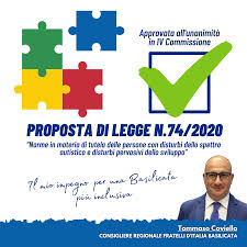 Alcuni pedagogisti italiani  definiscono la scuola italiana come la “grande disadattata”, ma non per la qualità dell’insegnamento ma per l’incapacità a volte  di riuscire poter operare efficacemente nell’inclusione di ogni alunno, arrivando all’equità, al diritto all’educazione, alla formazione, all’insegnamento a tutti, compreso chi ha le “speciali diversità”. La scuola italiana – in questi ultimi periodi sotto il mirino di una critica ingiusta e fuorviante sui  social e senza analizzare la reale situazione per la didattica a distanza o latro – è all’avanguardia con le leggi per l’insegnamento agli alunni che necessitano insegnanti di sostegno oppure di insegnamenti personalizzati o individuali. Citiamo solo qualche legge : Alunni disabili (legge 104/1992); Alunni con Disturbi Specifici di Apprendimento e/o disturbi evolutivi specifici (legge 170/2010); poi le disposizioni per Alunni con svantaggio sociale e culturale o quelli svantaggiati dalla non conoscenza della lingua italiana. Le leggi ci sono ma non basta, non bastano i fondi, non bastano gli stessi insegnanti specializzati  non basta la prassi. Specie quando poi si arriva alla didattica speciale per le persone affette da sindrome dello spettro autistico e disturbi pervasivi dello sviluppo; Disturbo di Rett¸ sindrome di Asperger, Disturbo Pervasivo dello Sviluppo  Non Altrimenti Specificato (incluso l’Autismo Atipico) e altro. Ma la scuola è una parte della vita, nel quotidiano, nella vita di tutti i giorni, le persone autistiche e le loro famiglie “stentano a trovare rifugio e accoglienza nel sistema di tutela pubblico, il quale, spesso, non è strutturato per garantire servizi completi, prestazioni efficaci soprattutto a livello di diagnosi precoce, presa in carico, intensività delle cure e continuità delle stesse in età adulta”.  La  Basilicata ha anche una legislazione del 2008 ma per iniziativa del consigliere Tommaso Coviello del gruppo consiliare di Fratelli d’Italia si è una nuova proposta di legge per la tutela delle persone con disturbi sindrome dello spettro autistico.  Una proposta che è stata votata in Quarta Commissione “Affari Sociali” all’unanimità. Di questa proposta di legge e delle sue principale caratteristiche  ne parliamo direttamente con il consigliere Coviello .