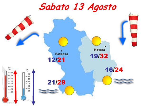 Sabato 13 Agosto Condizioni di cielo sereno o quasi sereno su tuta la regione.