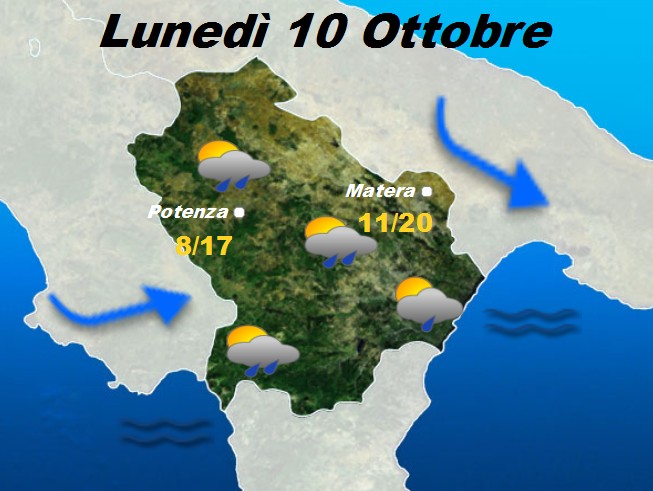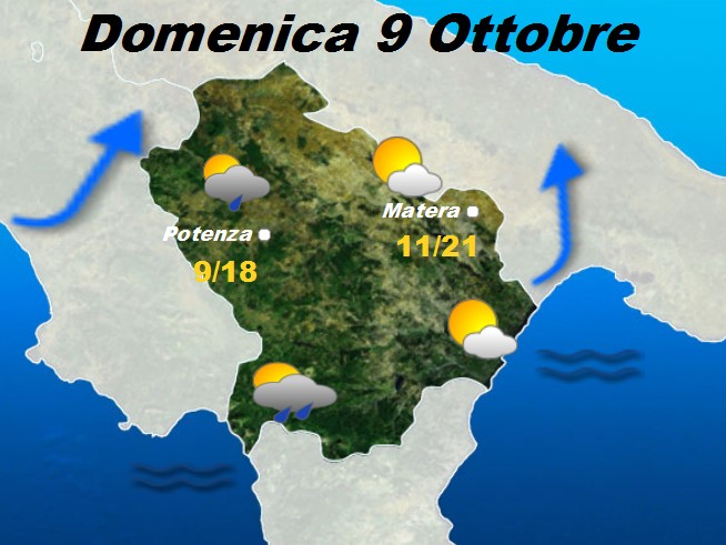 Domenica 09 Ottobre: cielo da poco nuvoloso a parzialmente nuvoloso con aumento della nuvolosità nel corso della giornata a partire dai settori occidentali in estensione a quelli orientali. La nuvolosità si accompagnerà a precipitazioni, a partire dal settore tirrenico, dapprima deboli e a carattere sparso con tendenza a divenire diffuse ed estese al resto del territorio. Venti dai quadranti meridionali; mari poco mossi e temperature stazionarie.