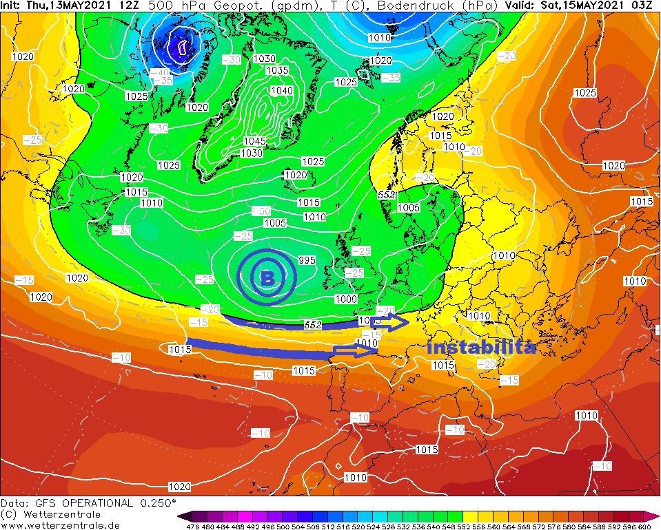 La fase fresca ed instabile che stiamo sperimentando da più di qualche settimana  durerà almeno fino al weekend. Ci aspettiamo, infatti, il passaggio di un fronte instabile che tra venerdì e sabato attraverserà tutta la penisola, accompagnato da piogge ed occasionali temporali. Da domenica le mappe in nostro possesso ci fanno scorgere un temporaneo intervento di un cuneo anticiclonico, che ci dovrebbe regalare qualche giorno di bel tempo pur in presenza di una generale variabilità, soprattutto nelle ore pomeridiane, a ridosso dei rilievi.
