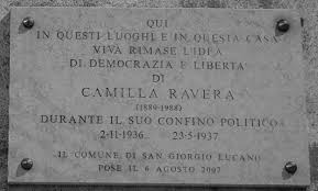 «Ma l’iniziativa, puntualmente annunciata dal banditore comunale, durò solo pochi giorni perché la polizia, informata del fatto, intervenne e la confinata fu trasferita a S. Giorgio Lucano, un paese all’interno e ancora più isolato, mentre il podestà, prima diffidato, venne rimosso dall’incarico – precisa lo storico Michele Strazza – Nella nuova destinazione Camilla Ravera prese prima alloggio nella locanda e, poi, nella casa della famiglia Gerardi, al piano di sopra.
