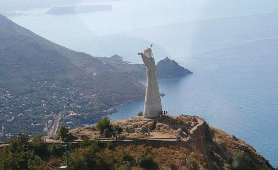 sa esprime non esprime nulla che abbia a che fare con la redenzione della gente del nostro povero mezzogiorno. Grosso, massiccio, gessoso, aeronautico, sudamericano, non riesce, essenzialmente, che a deturpare il paesaggio. Il monte San Biagio, su cui si erge, è ridotto da esso, per totale assenza all’ingiro di termini di confronto, a un sasso da niente, ad una specie di altarino d’uso domestico. Guardiamolo serenamente, attenendoci ai criteri della pura visibilità: e non ci sarà difficile riconoscerlo per fratello di tante altre statue del tempo fascista, appena appena camuffato com’è dall’atteggiamento gigionescamente serafico di un deteriore cattolicesimo.”