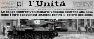 L’Unione Sovietica aveva mandato l’esercito e i blindati a reprimere i moti di Budapest, e la dirigenza del Pci, con Napolitano, condannò la ribellione degli ungheresi bollandoli come controrivoluzionari. Gli operai che si battevano per difendere la propria terra e la libertà vennero non solo criticati ma addirittura bollati (come scrisse l’Unità in quel periodo) come “teppisti” e “spregevoli provocatori”.