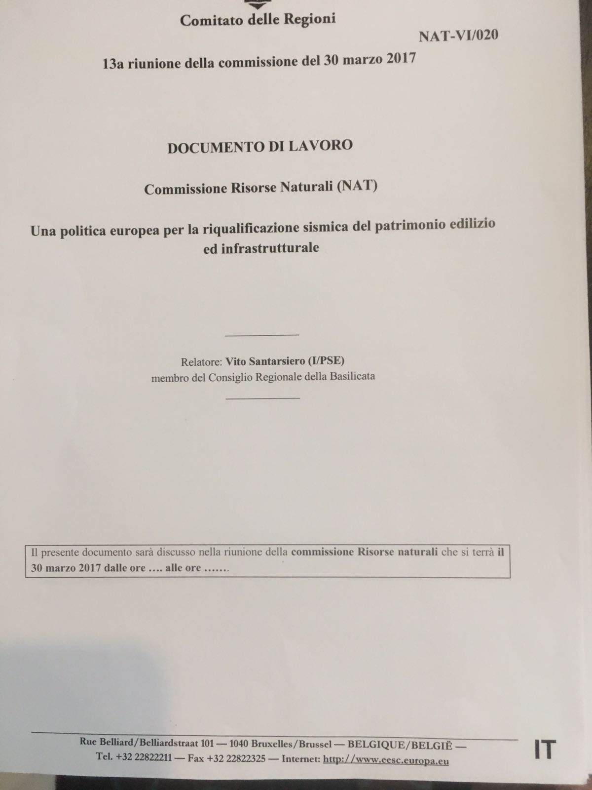 “Si tratta – dice Vito Santarsiero – di un primo significativo atto per arrivare alla approvazione di un parere destinato a favorire una strategia europea per l’adeguamento sismico degli immobili. Gli effetti di un sisma incidono fortemente sullo sviluppo locale, per le vittime, per i danni materiali e per il blocco dei processi di crescita economico e sociale.